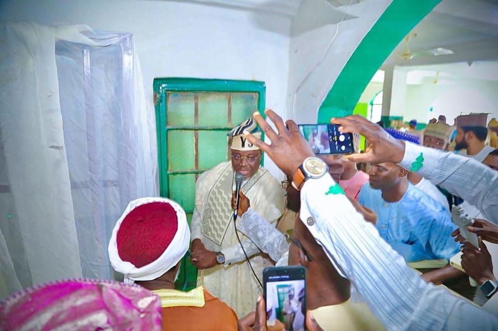 BTvNEWS: In a significant display of community engagement and generosity, Distinguished Ambassador Yerima Usman Shettima, accompanied by his team, attended Jumma’at service at the historic Ansar-ud-Deen Society of Nigeria, Kaduna Branch, the oldest Yoruba mosque on Friday in Kaduna.